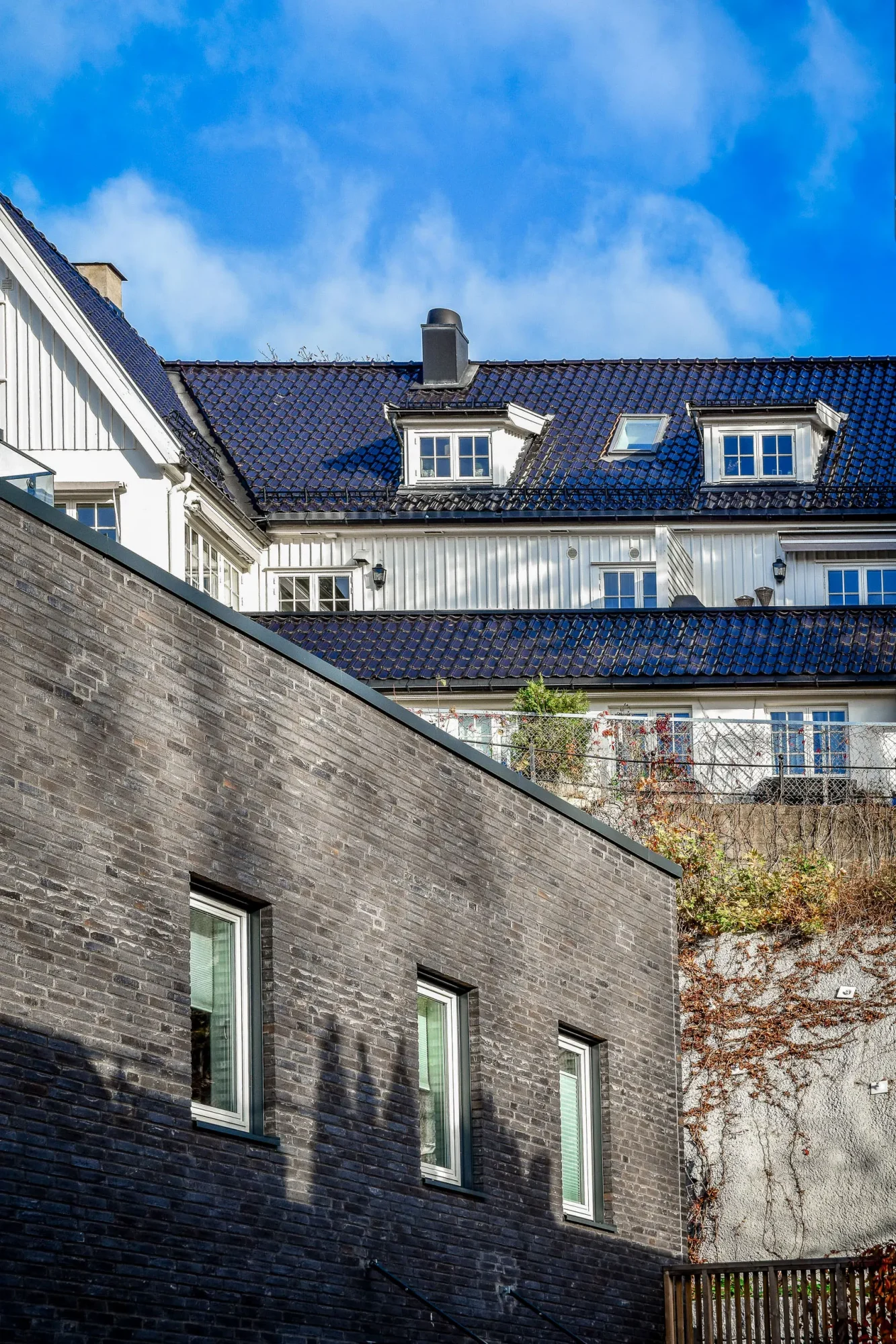 Nybyggene skal fremstå så integrert som mulig. De er lagt i vestskråningen nedenfor og med materialbruk og volum-sammenstilling med referanser både til småhusbebyggelsen rundt og den bevaringsverdige bebyggelsen på høyden ovenfor. Treverk mot boligene i nærområdet og det andre utformet i murverk med referanse til eksisterende murer i terreng, samt nærliggende bevaringsverdig bygg på høyden ovenfor.