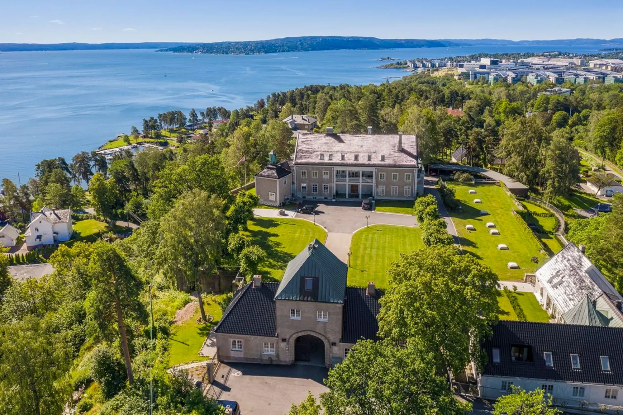 Eiendommen Lagåsen på høydedraget mellom Lysaker og Fornebu ble bygget av skipsreder A.F. Klaveness i 1920. Bebyggelsen ble tegnet av arkitekt Thorvald Astrup og Ivar Næss og er typisk for norske skipsredere i deres velmaktsdager i 1920 årene, og bestod av Hovedbygning, Portnerbolig, uthus (Vinkelbygget) og et stort antall garasjer (Stallene), ettersom A.F. Klaveness var en bilentusiast.