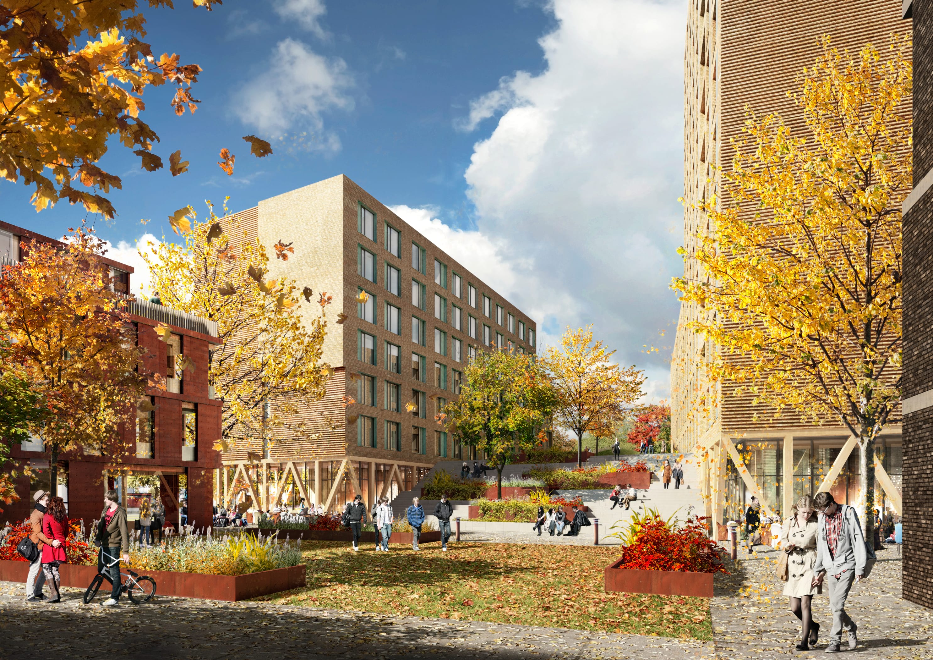 Byplangrepet med de to lamellene utfyller byens struktur, og gir et svært enkelt og rasjonelt byggeri. De to lamellene er plassert i nord-syd retning i tomtens byggegrenser. Det enkle grepet gir dermed optimalt solbelyste boligfasader. Vinkelen mellom lamellene og variasjon i høyde gir inntrykk av urbant kvartal og snakker dermed med den historiske bystrukturen. Høydevariasjonen tilpasser seg nabobebyggelsen: Avenyens hotell, småhusbebyggelsen og den store messehallen får et vertikalt kontrapunkt i høyhuset som markerer stedet i bylandskapet.