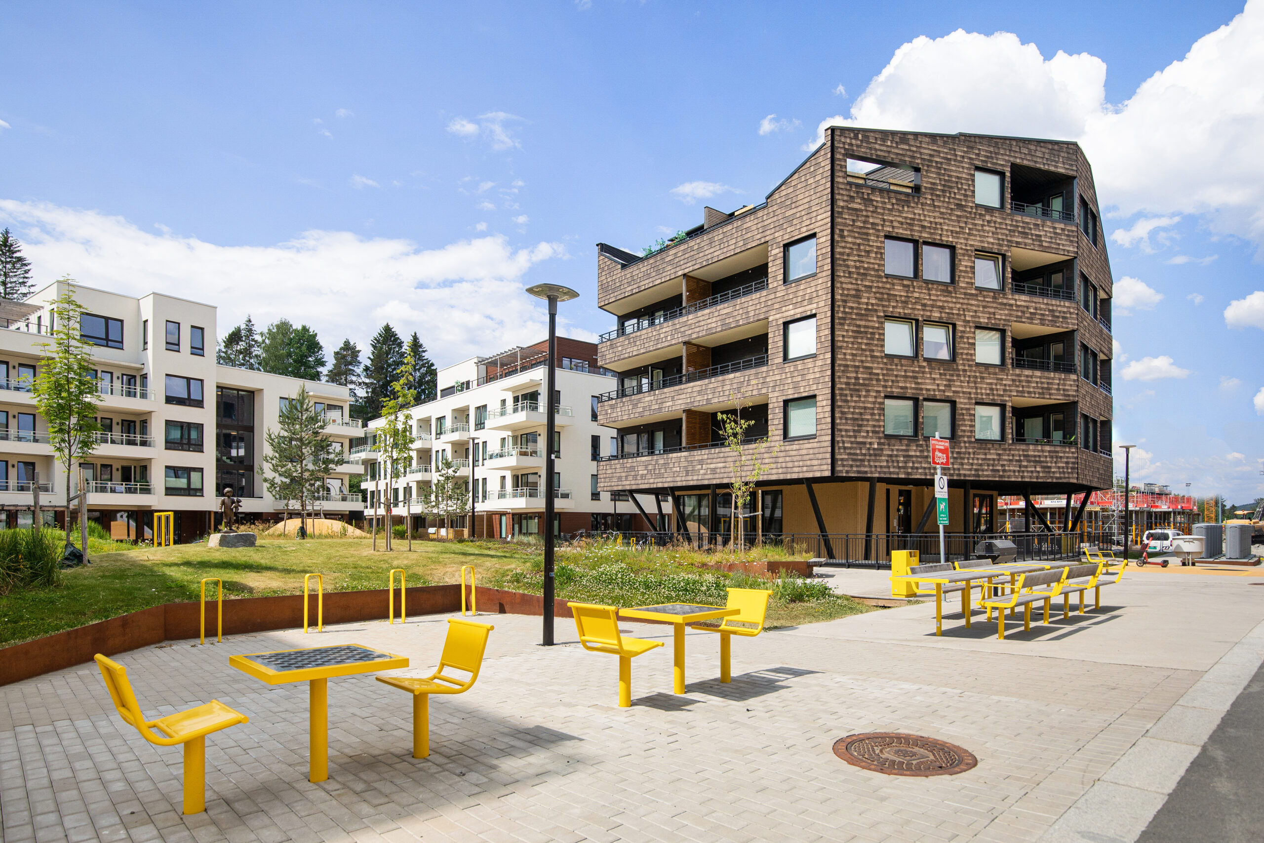 Skårerbyen skal fremstå som et trygt og inkluderende bomiljø som legger til rette for et godt naboskap. Markerte bygningsvolumer i puss skaper helhet og gjenkjennbar arkitektur og Kongla, den første av to ”Generatorer” i området, står frem med en tydelig og identitetsskapende arkitektur som pirrer nysgjerrigheten. Kongla inneholder fellesfunksjoner og er samlingspunkt for beboerne.