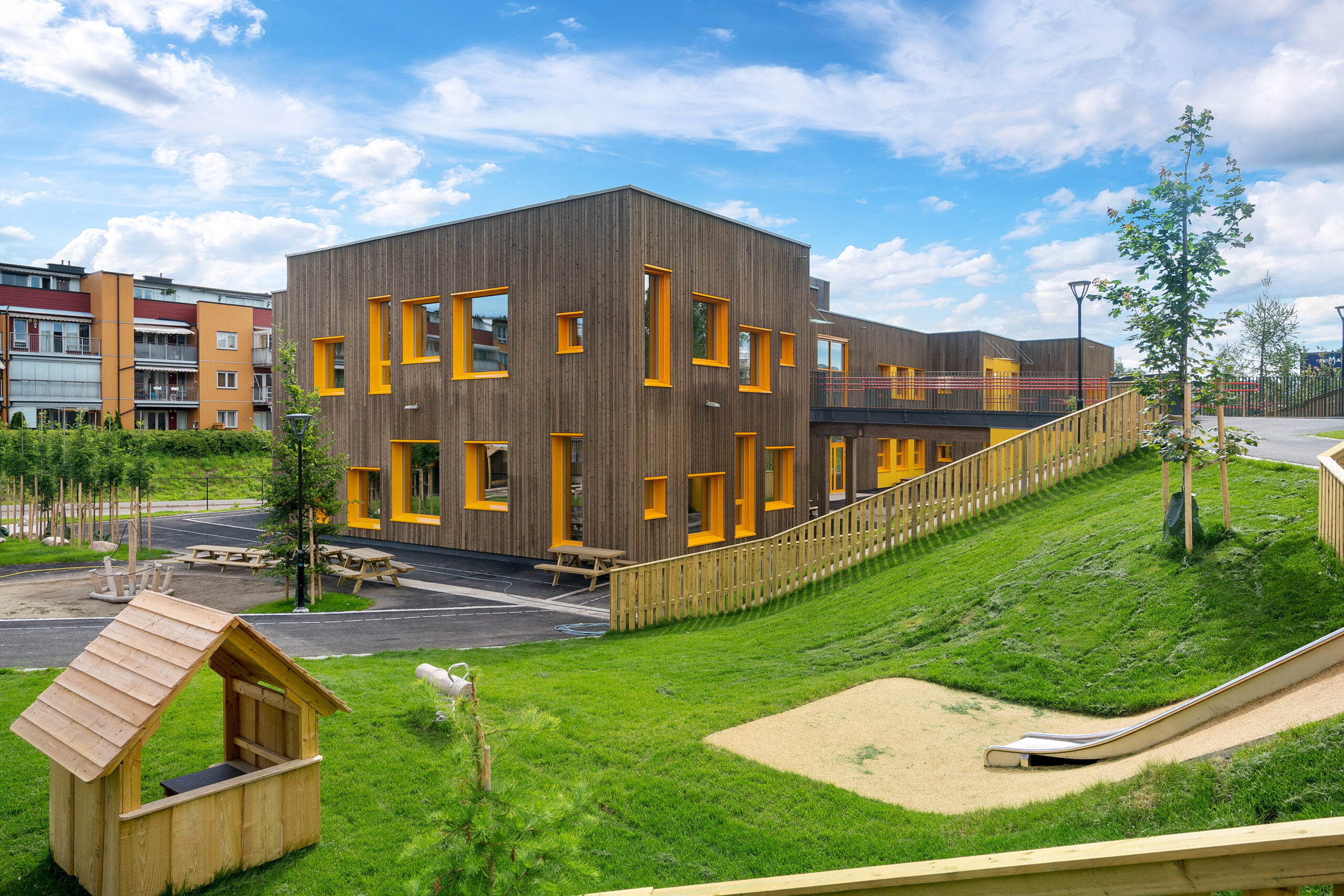 Barnehage i massivtre med 8 avdelinger, totalt 192 barn og 36 ansatte.