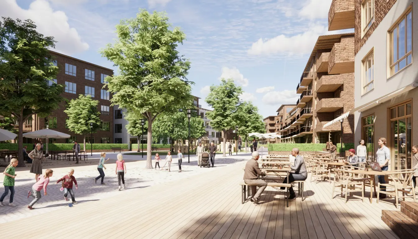 Planforslaget tar utgangspunkt i Fornebu som sted og etablerer en klar bystruktur og sekvenser av sammenhengende møtesteder, fellesareal, grøntareal for et tydelig identifiserbart nabolag både for beboere og besøkende. Med dette grepet skapes uformelle/ikke-kommersielle møtesteder, for alle generasjoner. Prosjektet baserer seg på «Townscape» prinsippene med et arkitektonisk uttrykk som henter inspirasjon fra overgangsfasen mellom nyklassisme og funksjonalisme. Planen består av en rasjonell boligstruktur som organiseres slik at det skapes et mangfold av byrom og bomiljø. På den måten designer vi et område som bidrar til at fremtidens Fornebu blir «more than the sum of its parts».